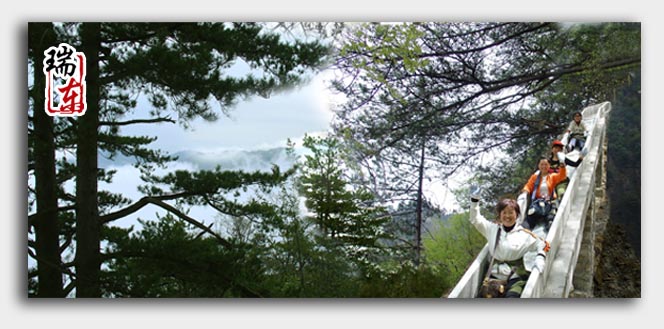 滑道是一種無載人工具滑道,靠重力自然下滑,速度由游客自己控制,安全好玩!是自然景區中一種新型的娛樂與代步為一體的參與性娛樂設施!它是以拋光的花崗巖石為主要材料,依山體坡度修建而成的巨型凹槽。既是老少皆宜的娛樂設施,又是充滿童趣的代步工具。