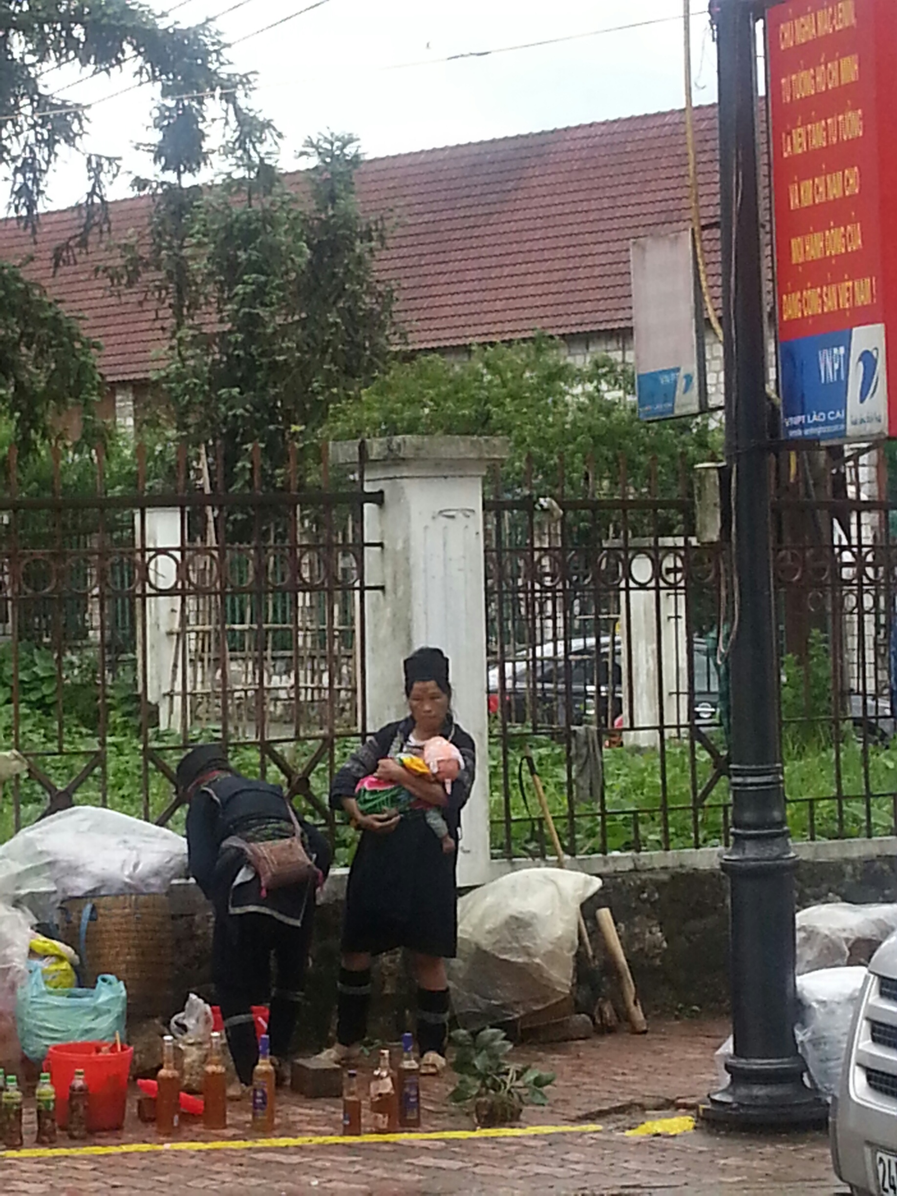 沙巴是越南老街省苗族(赫蒙族)最集中的縣之一,主要是黑衣苗族(Hmongb Dlob),有1.47萬人,占全縣總人口的51%。圖為她們在路邊出售自產峰蜜等土特產