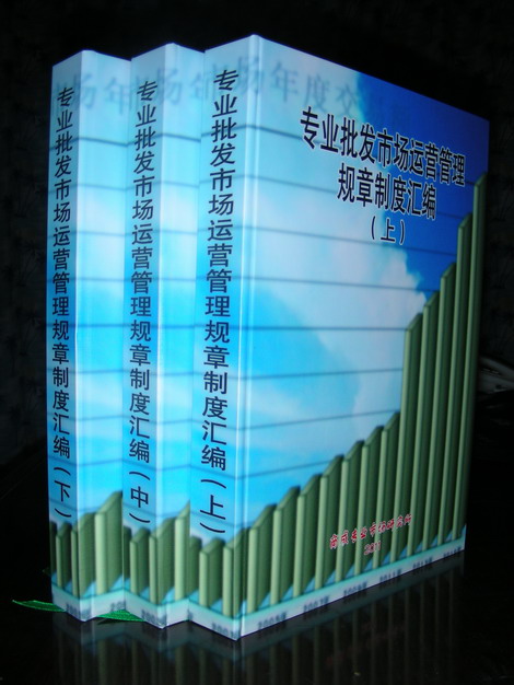 《專業批發市場運營管理規章制度匯編》約120余萬字,分電子書、紙介質兩種形式發行。紙質規格:16開,近1300頁;電子書,光盤。浙江(義烏)商成專業市場研究所總發行 電話 0579 85099786 發行QQ1615472898